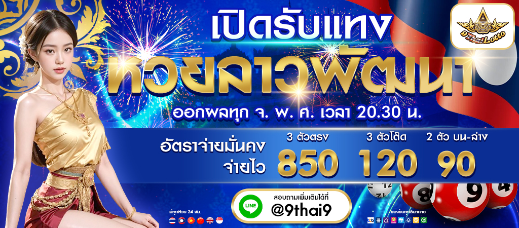9ThaiLotto.com เว็บหวยออนไลน์รูปแบบใหม่ ครบทุกบริการ ทั้งแทงหวยรัฐบาล หวยลาว หวยฮานอย หวยยี่กี หวยหุ้น พร้อมสูตรหวย ข่าวหวย และคาสิโนสดจากค่ายดัง จ่ายจริงทุกยอด ปลอดภัย 100% สมัครฟรีวันนี้!