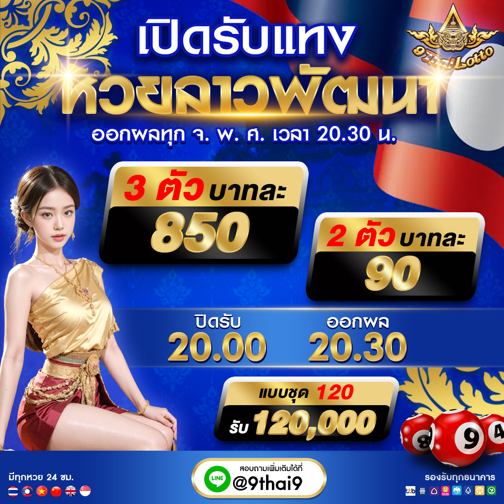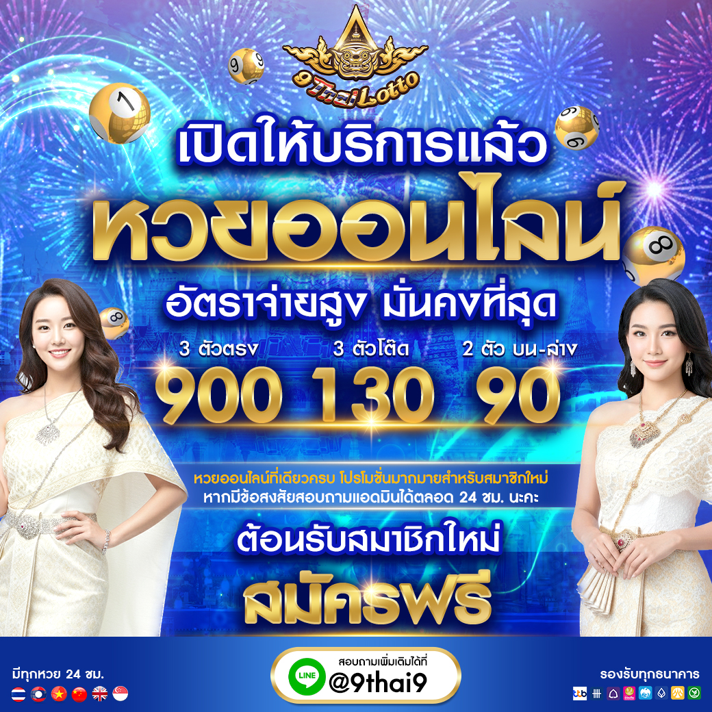 9ThaiLotto.com เว็บหวยออนไลน์รูปแบบใหม่ ครบทุกบริการ ทั้งแทงหวยรัฐบาล หวยลาว หวยฮานอย หวยยี่กี หวยหุ้น พร้อมสูตรหวย ข่าวหวย และคาสิโนสดจากค่ายดัง จ่ายจริงทุกยอด ปลอดภัย 100% สมัครฟรีวันนี้!