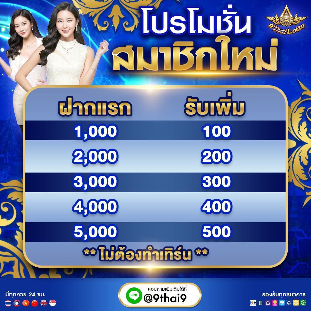 ดังนั้น 9Thailotto จึงมอบสิทธิพิเศษมากมายให้กับผู้เล่นทุกคน เพื่อให้คุณได้รับความสนุก คุ้มค่า และมั่นใจในทุกการเดิมพัน